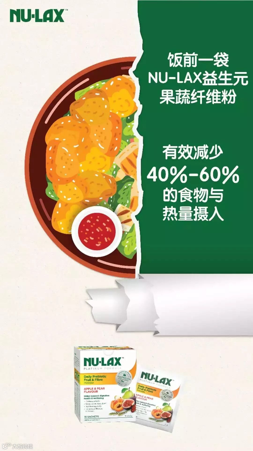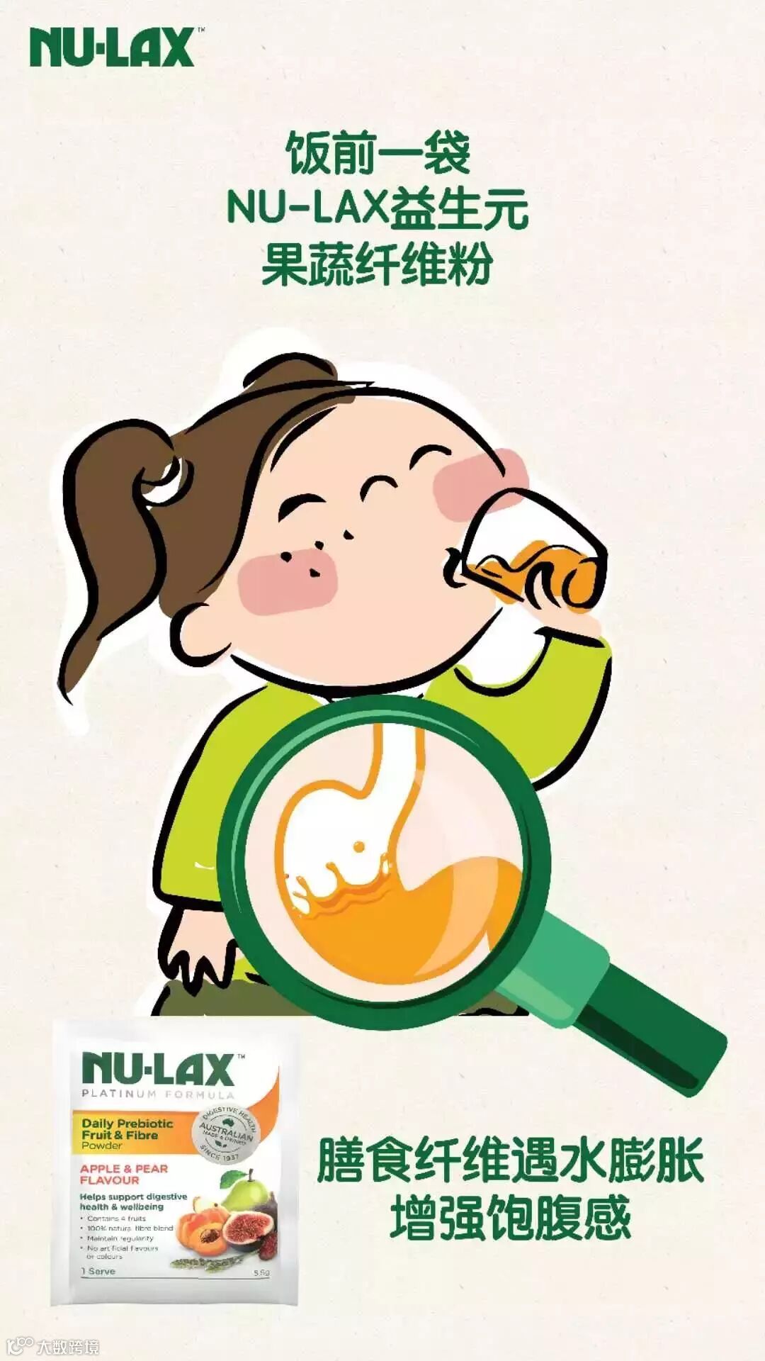 饭前一袋Nu-Lax铂金版果蔬纤维粉,不仅热量极低,而且丰富的膳食纤维,能阻止多余油脂吸收,减缓糖分吸收速度,增强饱腹感。你要不要来Pick一下?