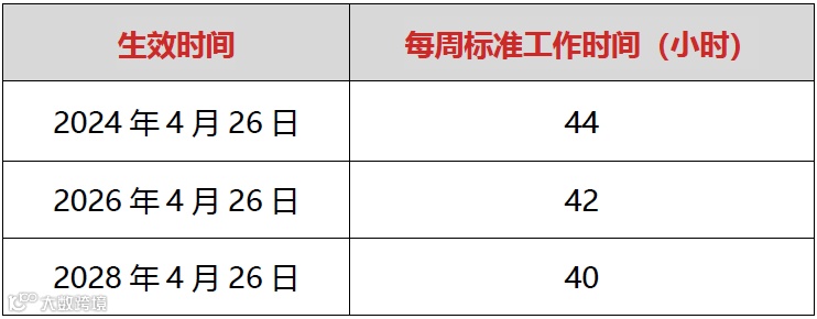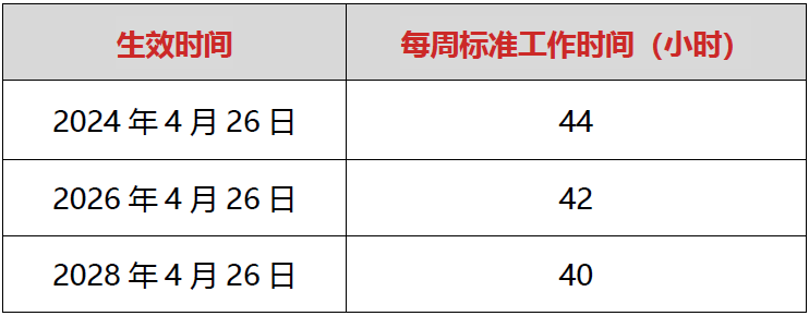 注:自2024年4月26日起,若企业主动适用40小时工作制,则每周的工作日不得多于6天、少于4天。