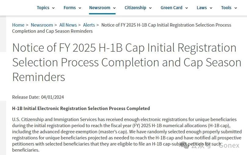 美国移民局:2024年H-1B已完成首轮抽签