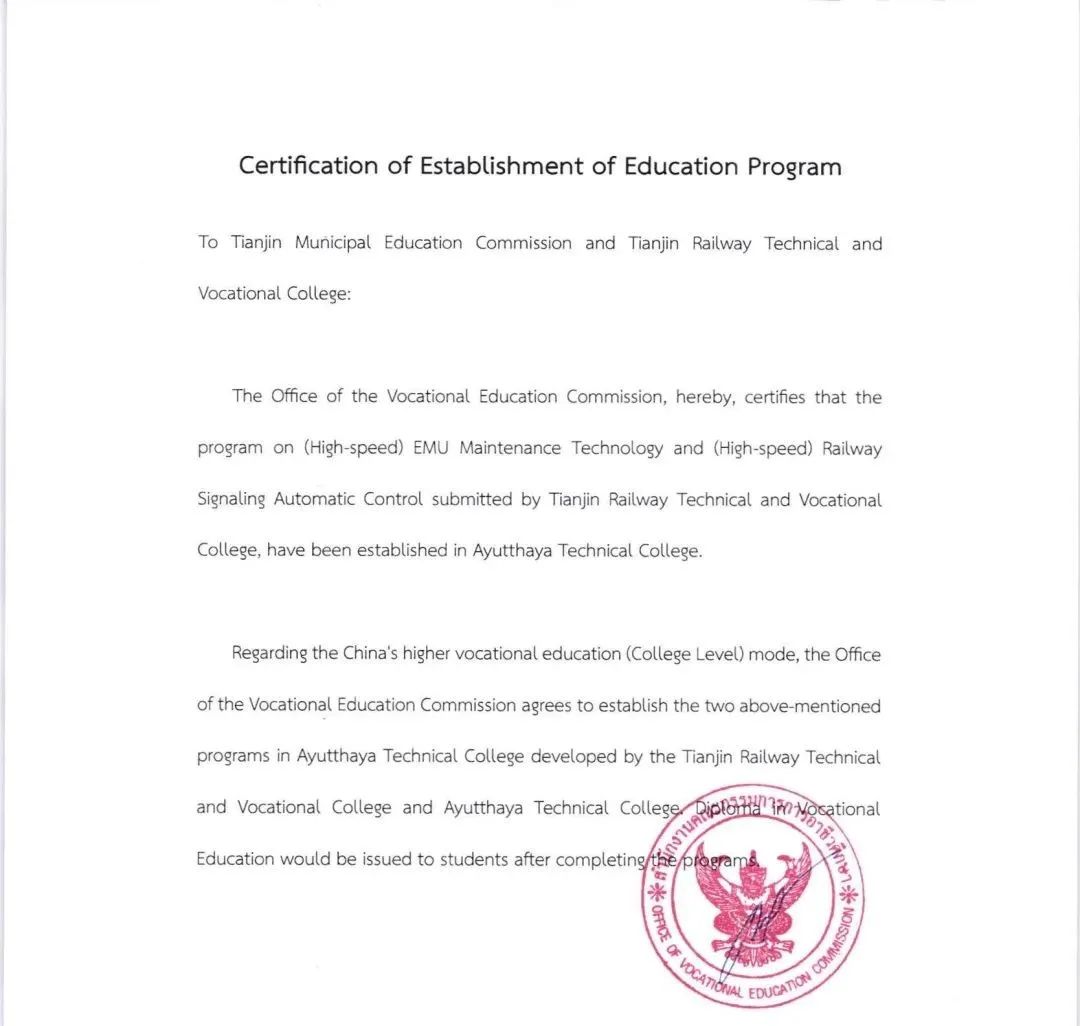例如,天津渤海职业技术学院、天津铁道职业技术学院等学校在泰国鲁班工坊制定的机电一体化、新能源汽车、机械制造与自动化CNC、物联网、(高铁)动车组检修技术、(高铁)铁道信号自动控制等多个专业顺利通过泰国教育部职业教育委员会认证,成为当地技能人才培养的“黄金标准”。