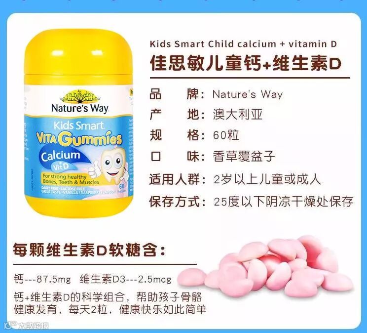 很多宝宝有挑食的毛病,尤其不喜欢蔬菜,容易缺乏成长所需的维生素。Nature’s Way佳思敏多维果汁软糖有9种重要维生素及几种蔬菜萃取精华,能为孩子补充所缺的维生素,均衡营养,有助增强体质