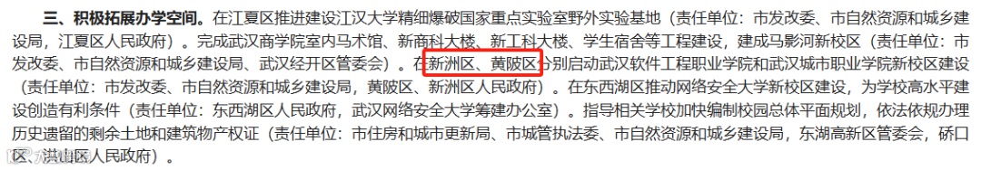 《通知》还指出,这两所职业本科学校将在武汉市新洲区和黄陂区开展新校区建设,这也将为远城区覆盖更均衡的本科层次教育资源。