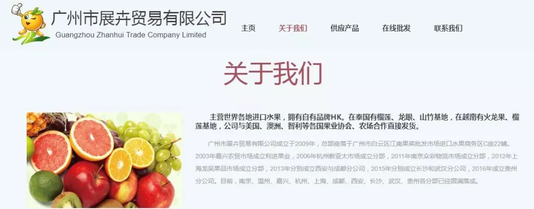 广州市展卉贸易有限公司,是国内大型专业的一级进口水果批发商,专业从事进口水果的采购与批发,集零售、批发、商超配送全能服务于一身,拥有专业的冷链物流配送、一站式服务的网上水果商城, 是中国果品批发行业的标杆性企业、中国大型专业化时尚精品水果连锁批发领军品牌。