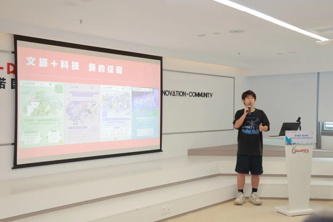香港五邑总会青年代表张朝哲详细介绍在香港政府实施多项政策,鼓励香港青年到湾区发展的背景下,总会如何搭建平台,以科技赋能湾区青年文旅产业,以大湾区青年特色系列实习计划,如“大湾区剧本杀实习计划”、“大湾区未来实习计划”等,开拓大湾区社会组织“科技+文旅”融合推助文化交流新模式。
