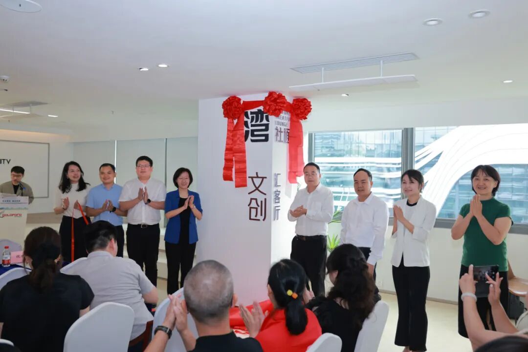 会上,广州文化发展集团有限公司党委副书记、董事黄斌,广州市南沙区民政局党组书记、区社会组织党委书记苏茂庆,广州市民政局社会组织登记发展处副处长、南沙区民政局副局长、三级调研员印锐,广州市南沙区文化广电旅游体育局党组成员、三级调研员黄旭程,广州市南沙区文化馆馆长廖勇,广州市南沙区粤港澳大湾区文化交流中心理事、香港高锋集团副总裁陈丽兰,广州粤港澳大湾区社会组织合作发展中心理事、副总干事倪方方,广州市电影家协会专职副主席、秘书长赵梦菲共同为首个粤港澳社会组织文创交流平台“湾社通·文创汇客厅”揭牌。