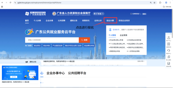 https://ggfw.hrss.gd.gov.cn/employment/internet/portal/#/home