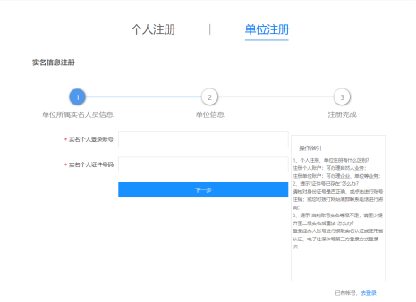 如不懂如何注册可点击【个人注册指引/单位注册指引】查看教程