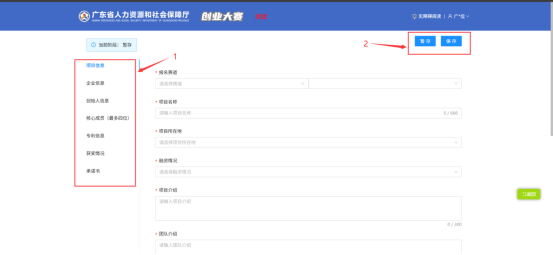 登录成功后,进入到报名资料填写界面,填写好信息后点击右上角【保存】按钮,如未填写完成的可点击【暂存】按钮