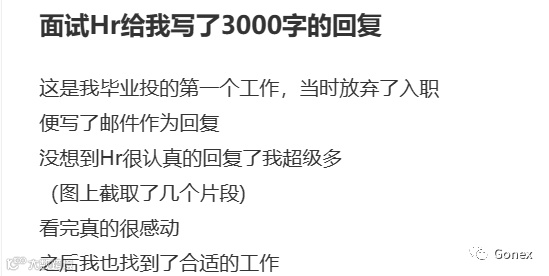 首先,我要赞扬这位HR的真诚和善意。他没有因为林羡放弃入职而生气或失望,也没有用官方或冷漠的语气回复她。相反,他用了很多时间和心思,向她分享了自己的工作经历和感悟,还给她提供了很多有价值的信息和建议。他没有刻意说服或劝说她改变主意,而是尊重她的选择,并给予了她肯定和鼓励。