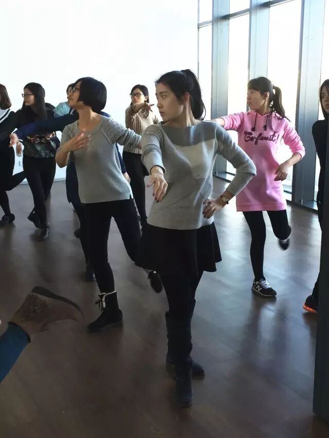 每个人都认真听舞蹈老师的指导,努力把每一个动作做好。