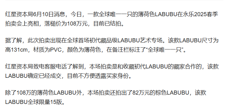 隔了一天没写本来还是想写非洲和U,对108万实在是看不下去了,写一下和圈内朋友聊LABUBU的一些信息。