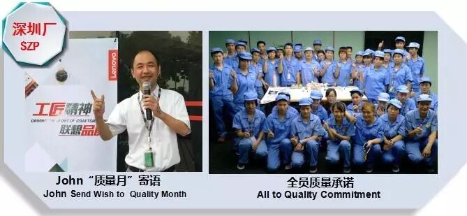 9月1日,在“工匠精神,联想品质”的主题下,中国制造工厂联合启动质量月!John Egan 和Wilson Zhu在主题横幅上签下名字,表达了对联想品质的郑重承诺和对联想品质的信心!
