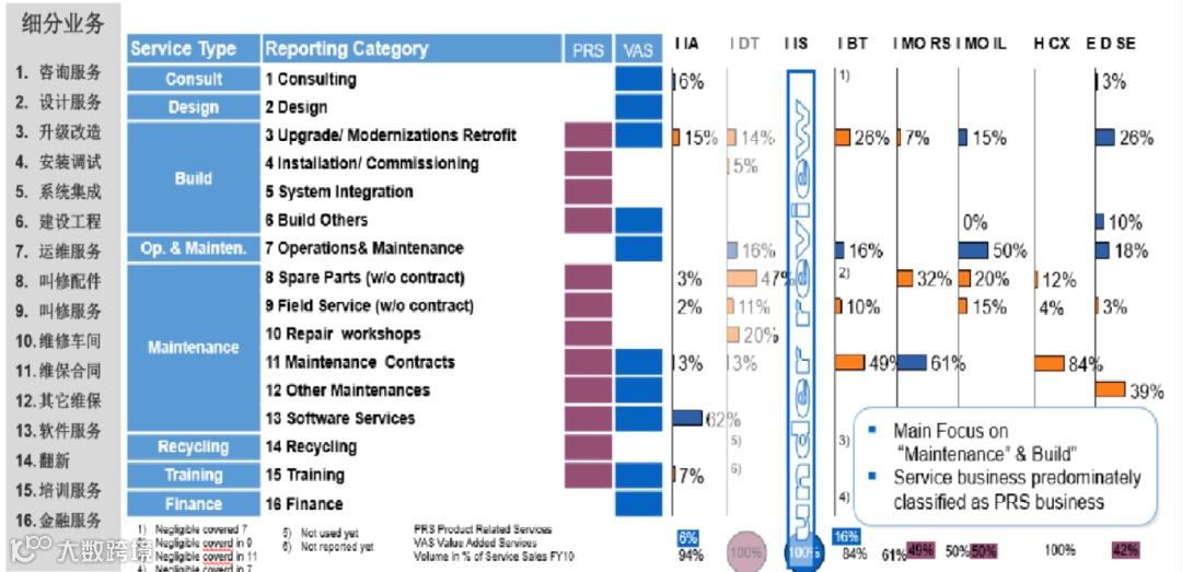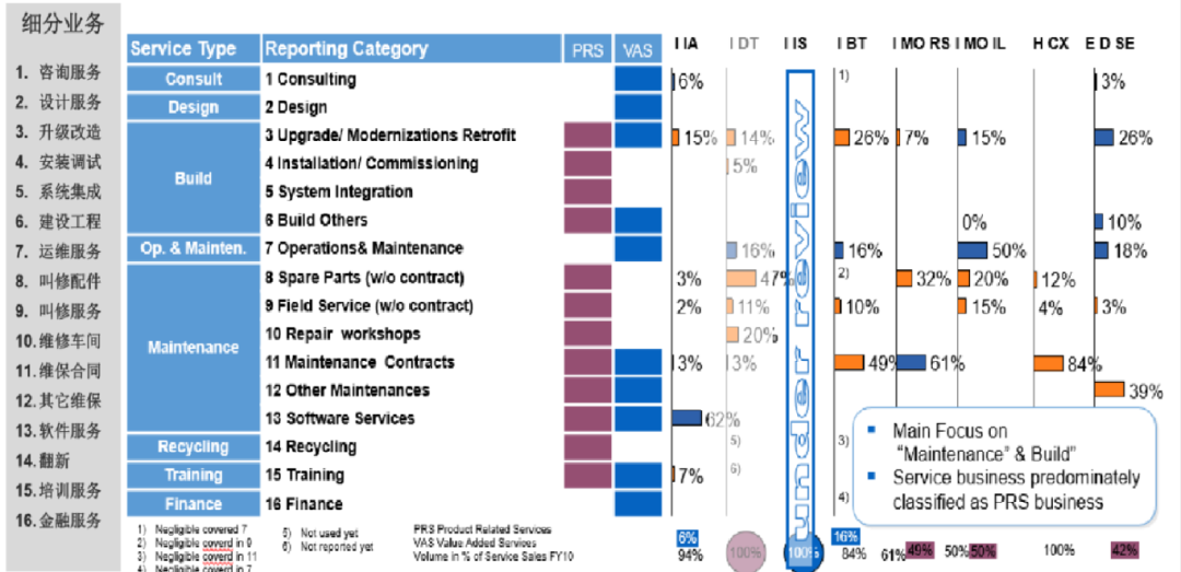 而欧美领先制造业企业率先通过发掘客户需求,拓展售后部门支持能力,为客户提供解决方案式售后服务,由传统成本中心,转变为重要的盈利中心。服务内容由传统的产品安装、调试、维修及备品备件服务,拓展到设备检测诊断、长期维护保养、实时远程监控和检修、设备更新及升级改造、顾问咨询服务和客户培训等。因此,欧美很多装备制造商服务型收入超过50%。