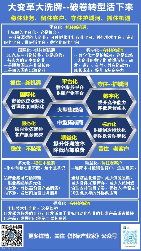 那些被淘汰或者即将被淘汰的中小自动化公司,不会自然而然退出舞台,他们会以另外一种形式重新回到战场---这个就是非标产业互联网平台的机遇,也是传统非标自动化公司的杀手。