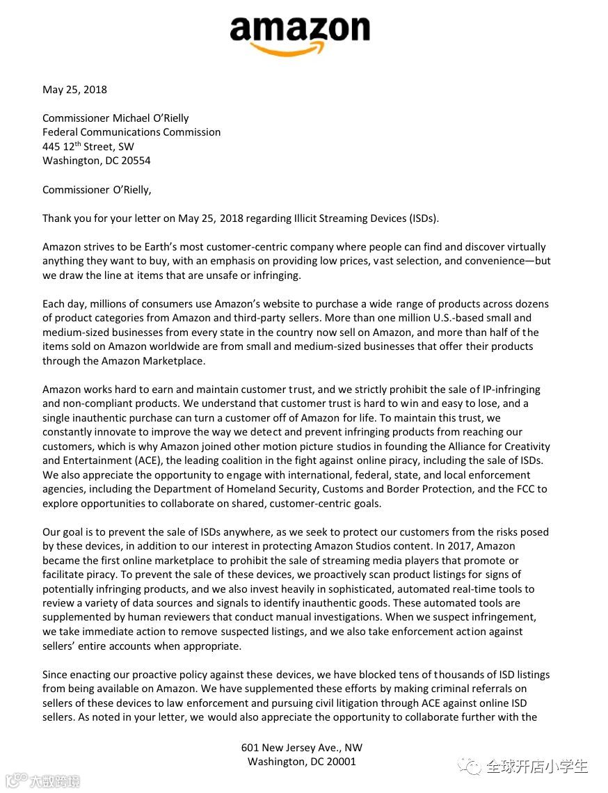 近日,美国FCC(美国联邦通讯委员会)给亚马逊和Ebay分别发信,要求两家平台下架违规的TVbox以及在必要时,将销售违规TVbox的卖家信息提供给FCC,此前,亚马逊对于平台上的TVbox产品已经进行了一次整顿,但是FCC表示现在平台上仍然有很多侵权违规产品,有的产品甚至没有得到FCC的许可的情况下,将FCC的logo印在产品上,亚马逊和Ebay对于FCC的要求都已经作出了回应,表示会继续整顿平台以维持平台的公信力