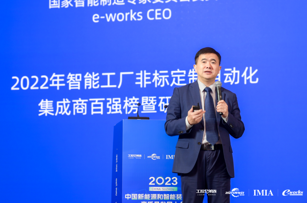 工信部产业政策司原巡视员、原副司长辛仁周和e-works(江苏)执行总经理徐海军共同颁发了“2022智能工厂非标定制自动化集成商百强”奖项;