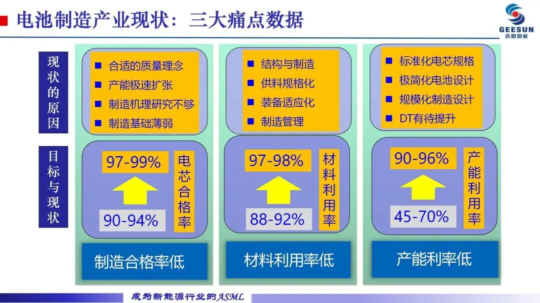 深圳吉阳智能科技有限公司董事长阳如坤以“先进电池装备与电池产品质量的未来”为主题,从制造能源时代与电池产业、电池制造的基础要求、电池标准与大规模制造、电芯极致制造闭环构建四个方面展开了精彩分享。他指出,当前电池制造产业面临制造合格率低、材料利用率低、产能利用率低三大痛点问题,电池制造工程体系基础也并不完善,需要推动制造技术创新,遵循单机智能、多机协同智能、分段连续一体智能、整线连续一体智能的路径,推进电池装备智能化。这其中,最重要的手段是用数据来实现设备的闭环、工序的闭环以及电芯制造的闭环。