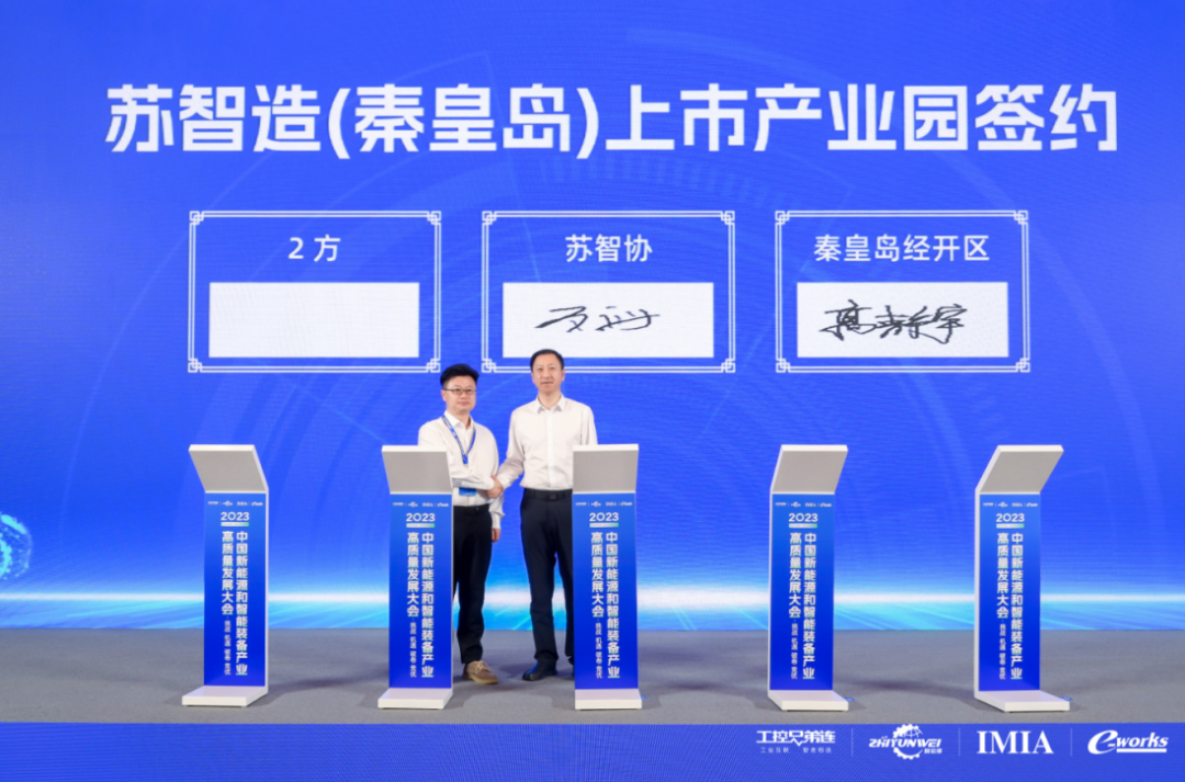 苏州市智能制造产业协会会长施正华还与秦皇岛经济技术开发区工委委员、管委会副主任、秦皇岛综合保税区管委会主任高静宇进行了苏智造(秦皇岛)上市产业园签约。苏州市智能制造产业协会将与秦皇岛经济技术开发区共同打造上市产业园,着力培育3年内上市企业。
