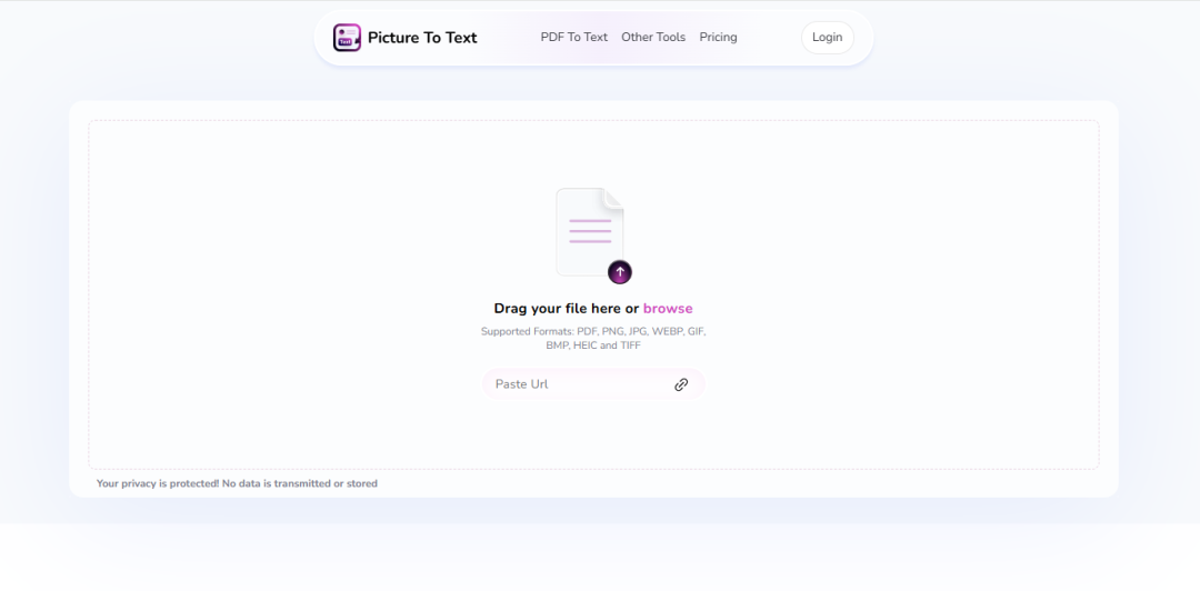 Hero部分也是简洁的只有一个上传图片的部分,还可以直接复制图片链接,对于搜索“picture to text”、“image to text converter”等关键词的用户来说,这个Hero部分直接满足了他们的需求,能有效降低跳出率并提高转化率。