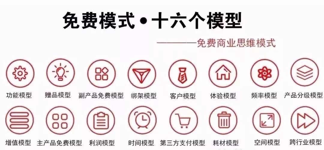 在现在这个无模式不商业,无商业不模式的时代,运用传统思维做生意,赚取差价,生意只会越来越难做。没有传统的生意,只有传统的思维,做生意也要与时俱进,只有改变经营思路,告别传统思维,才能从激烈竞争的红海中脱颖而出。 十六个免费模型之一的