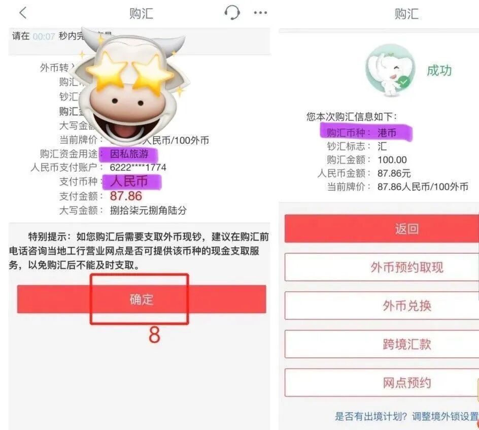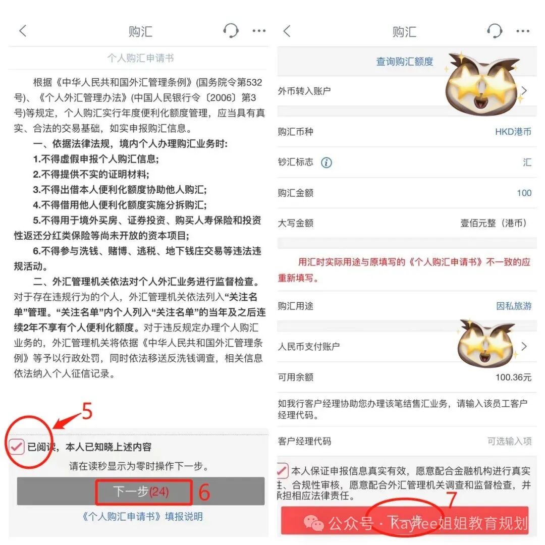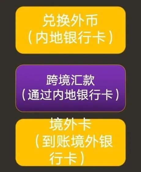 值得注意的是内地银行目前无法直接向境外的银行转账,所以首先需要大家先购汇(购汇就是指用本币(如人民币)兑换其他货币)!!