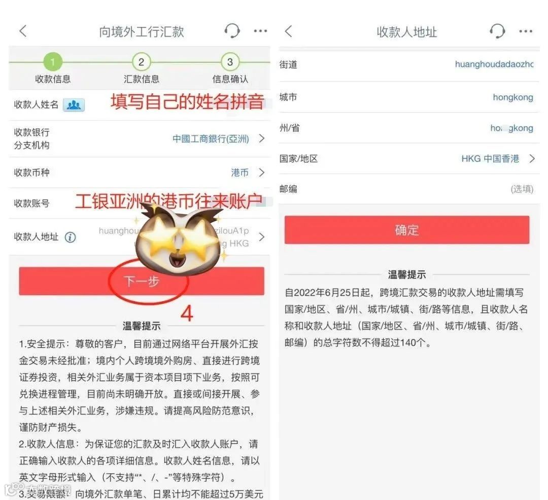 收款人地址:填写境外银行开户行分行地址就行,用拼音填写即可。