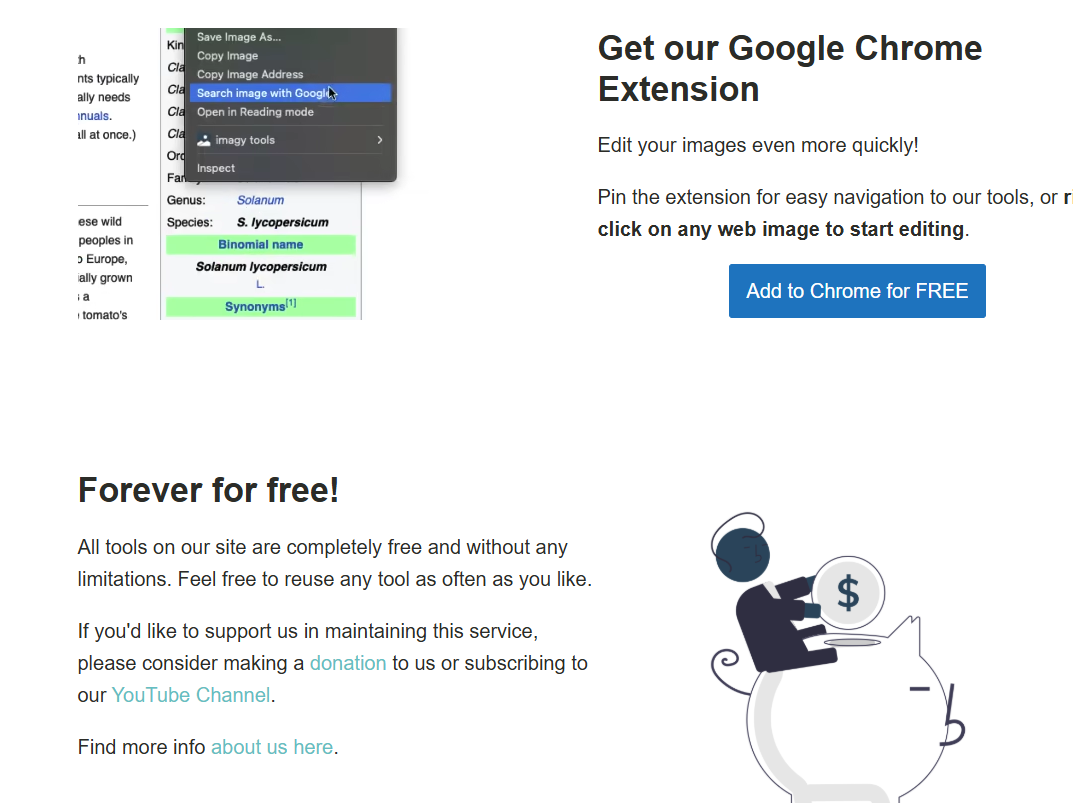 这部分是功能展示区,一共展示了12种功能,分别链接到各个功能的落地页,用户可以直接按自己的需求找到相应页面。再接下来是介绍了自己的插件和承诺用户永久免费,引导用户通过“捐赠”或“订阅YouTube频道”来支持,而非强制付费,这种模式容易建立良好的社区口碑,用户会很容易的在社媒上分享。