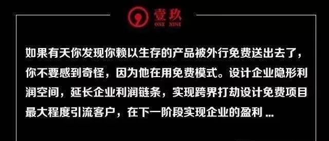 免费模式不是不要钱,而是一种吃亏、利他的思维方式,把这种思维方式运营到企业的经营活动中去,以达成更多领域的合作,延长利润链条,赚客户看不到的钱,从而完成利润目标!