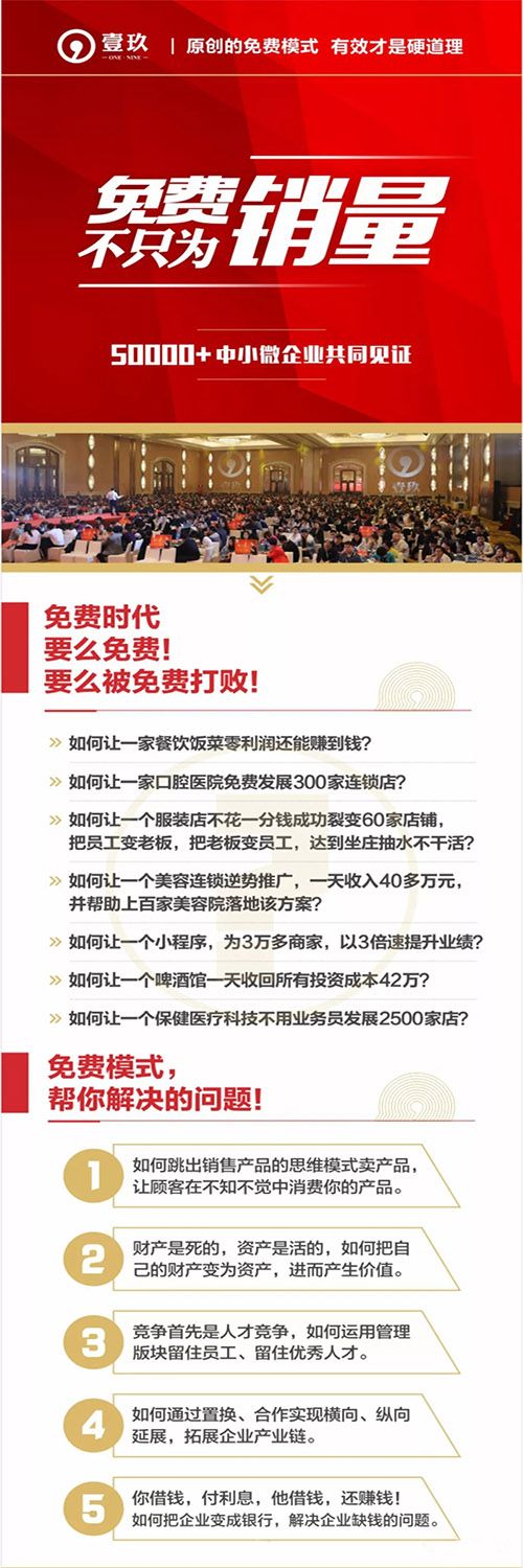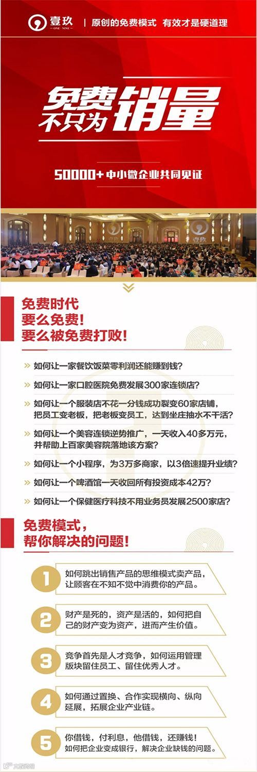 免费模式不是不要钱,而是一种吃亏、利他的思维方式,把这种思维方式运营到企业的经营活动中去,以达成更多领域的合作,延长利润链条,赚客户看不到的钱,从而完成利润目标!