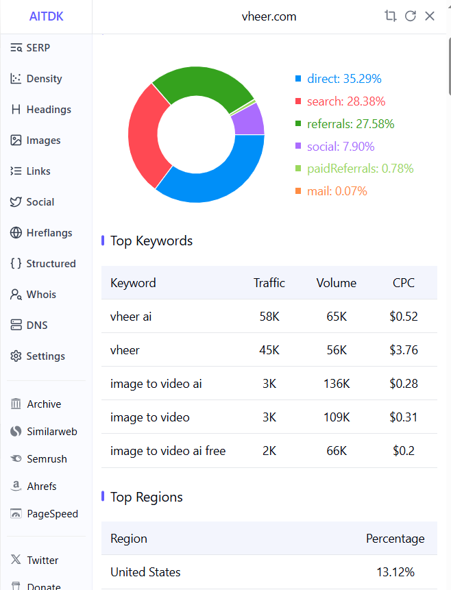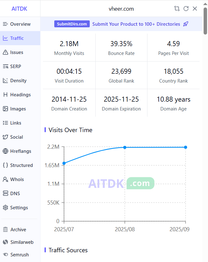 我们今天还是继续拆解网站,今天拆解的这个网站也是一个AI工具站,虽然比不上Pollo.ai的规模,但是作为个人站长或者小团队能做出这样的成绩也是相当厉害的,还是先看一下AITDK截图: