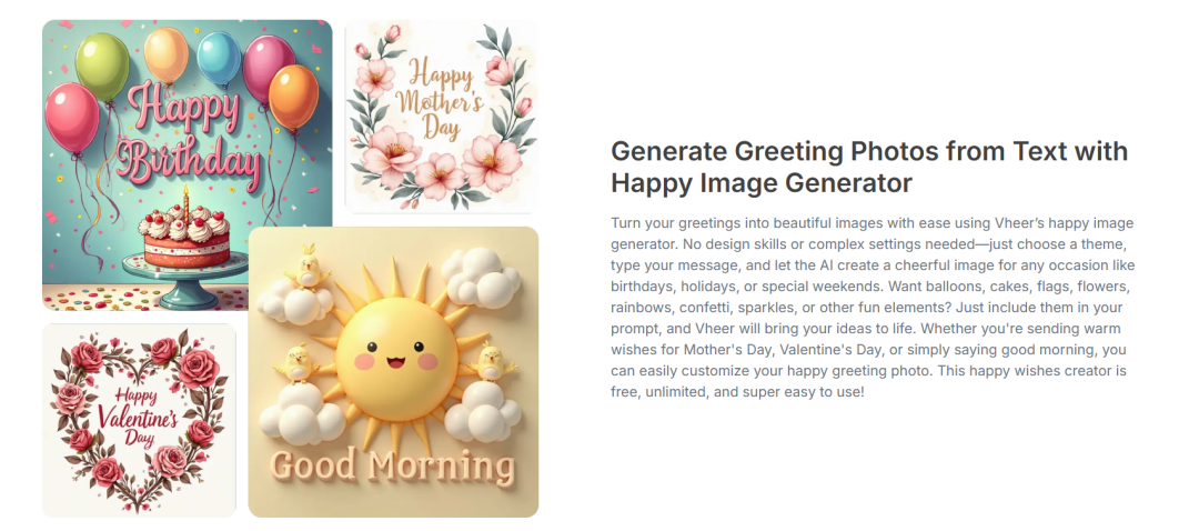 下面是Happy Image Generator的功能页https://vheer.com/app/happy-image-generator
