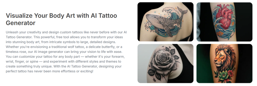 作为一个ALL IN ONE的工具站,它的首页相对简单多了,甚至不如一些单页的落地页复杂,尤其是HERO区域,只有一个主标题FREE ONLINE AI IMAGE GENERATE和下面的副标题,没有CTA, 没有用户评价。HERO部分下面罗列出了几个核心的功能并链接到相应的落地页。这里秉承了工具站的一贯风格,除了说明工具的核心功能,还加上了处理后的图片或者前后对比,用户一看图片就能清晰的知道这是什么功能。