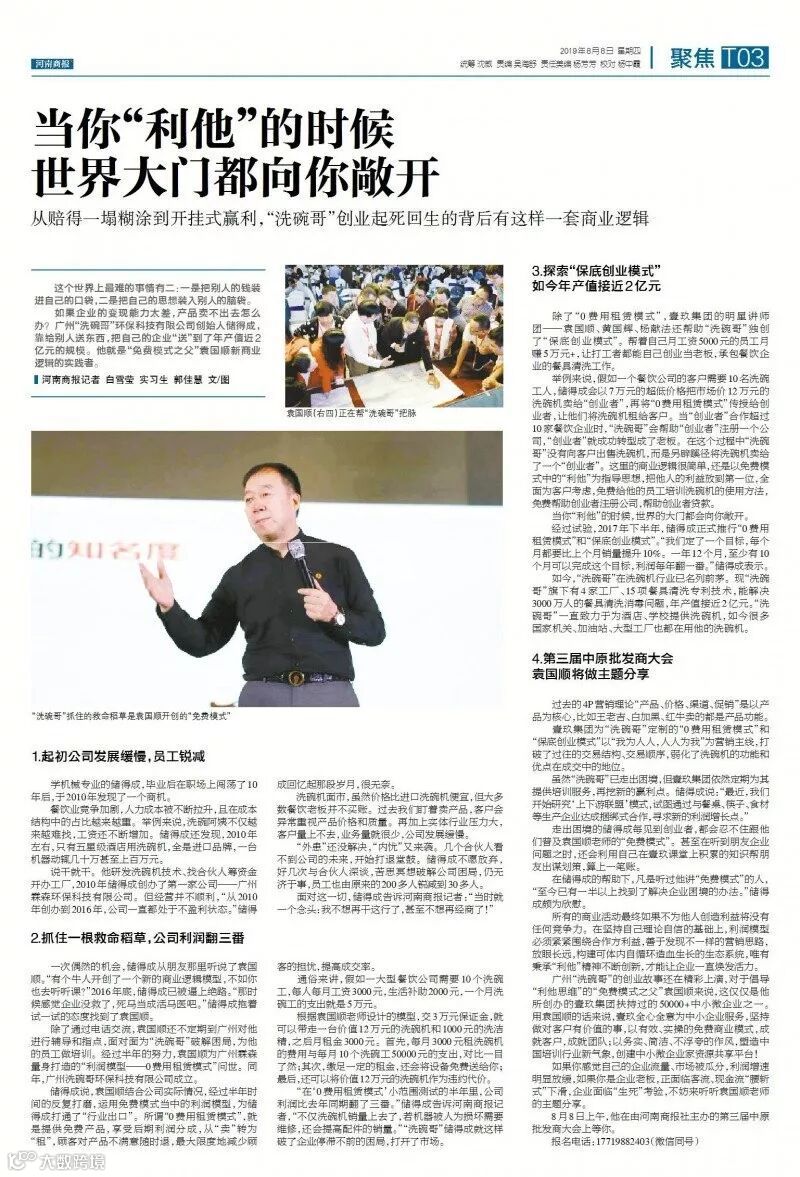 广州“洗碗哥”的创业故事还在精彩上演,对于倡导“利他思维”的 “免费模式之父”袁国顺来说,这仅仅是他所创办的壹玖集团扶持过的50000+中小微企业之一。