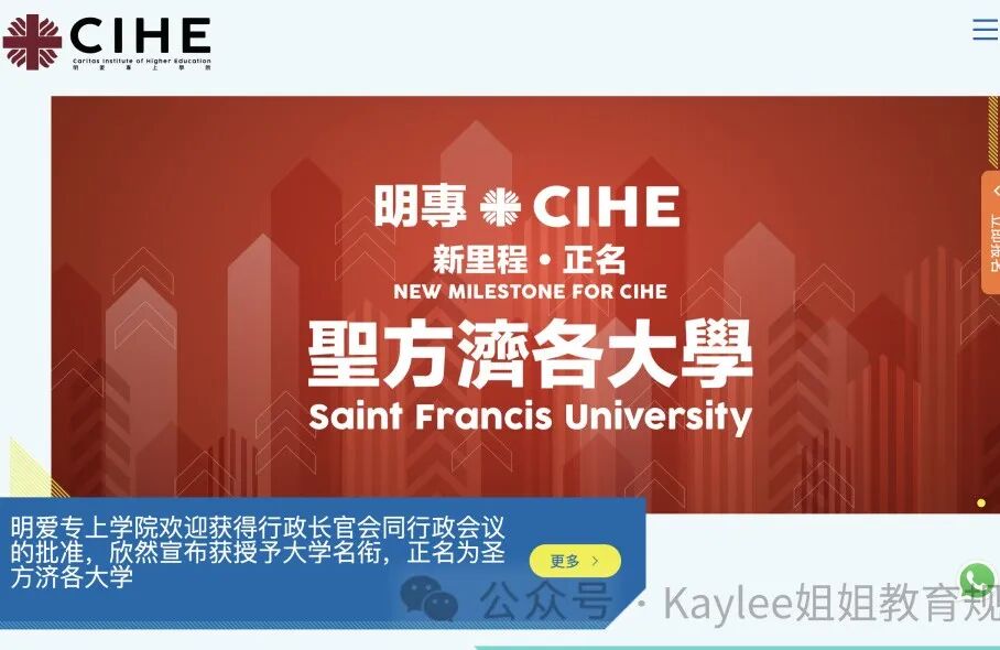 但是请注意⚠️圣方济各大学目前还不接受内地、澳门及台湾申请人报读研究生课程及学士学位课程,同学可考虑报读该大学的副学位课程。