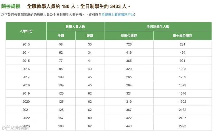(資料來自自資專上教育資訊平台)