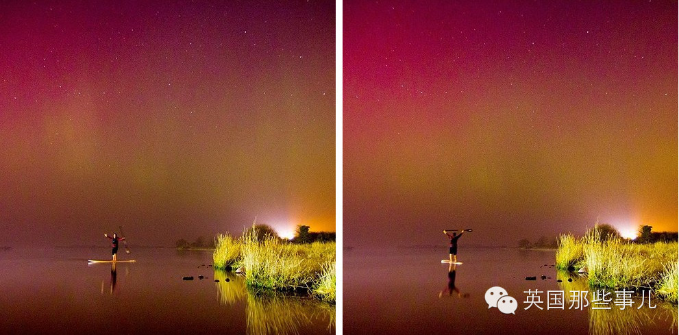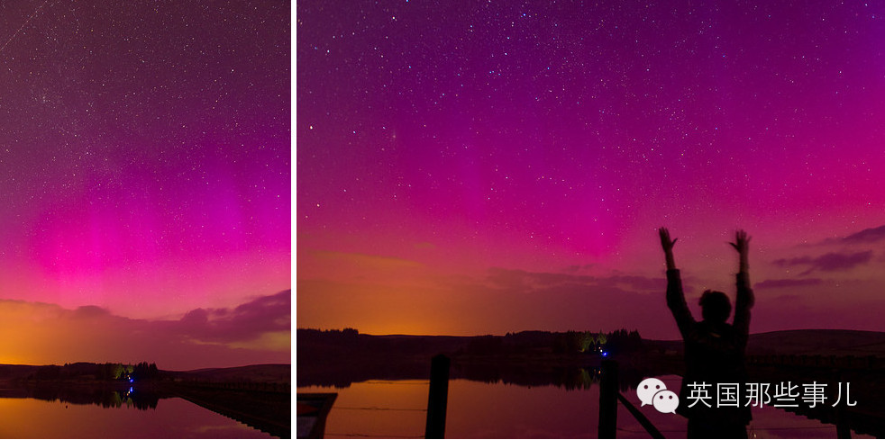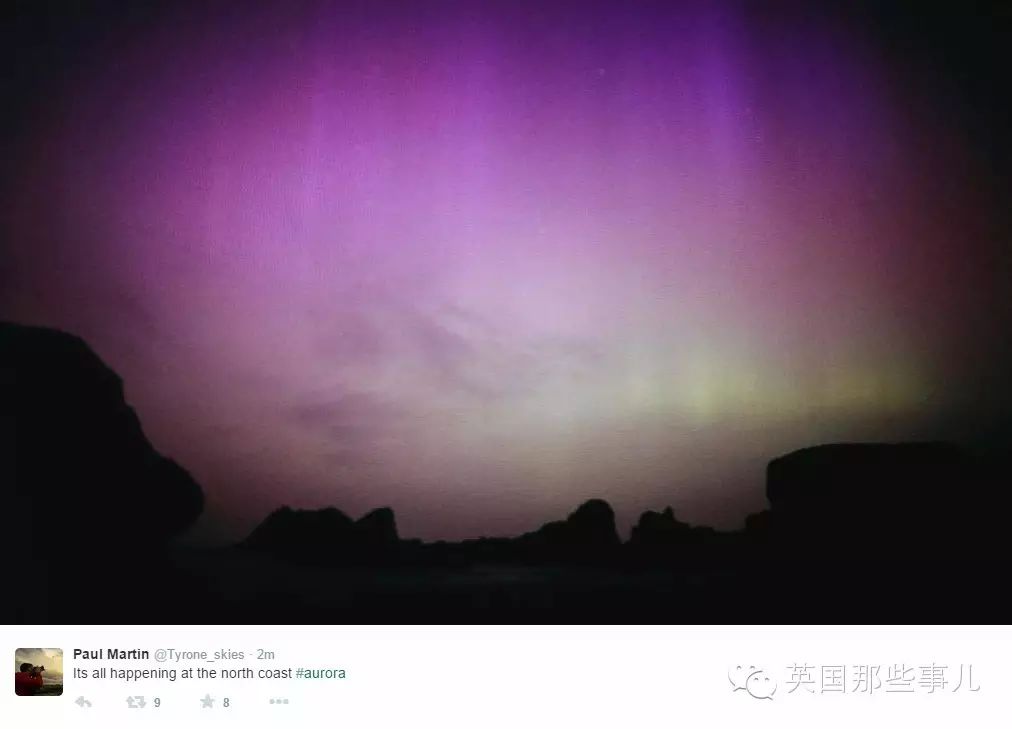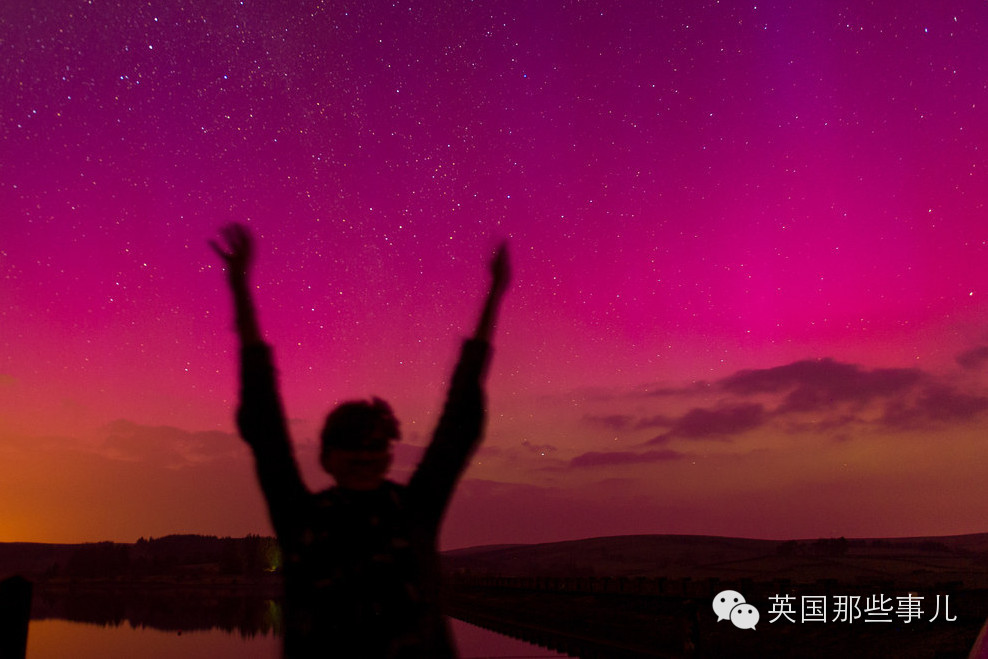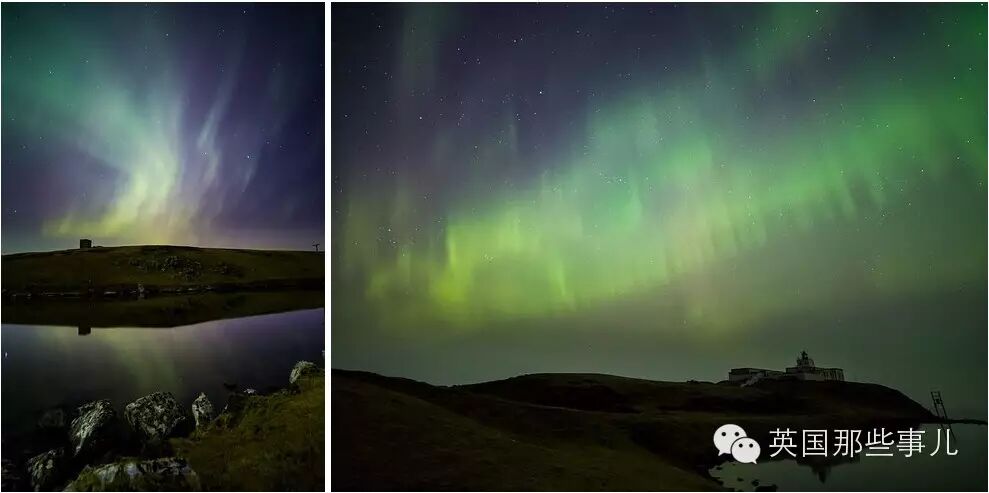 而英国正好是晚上,所以整个英国北半边都被这次超强极光笼罩了~!