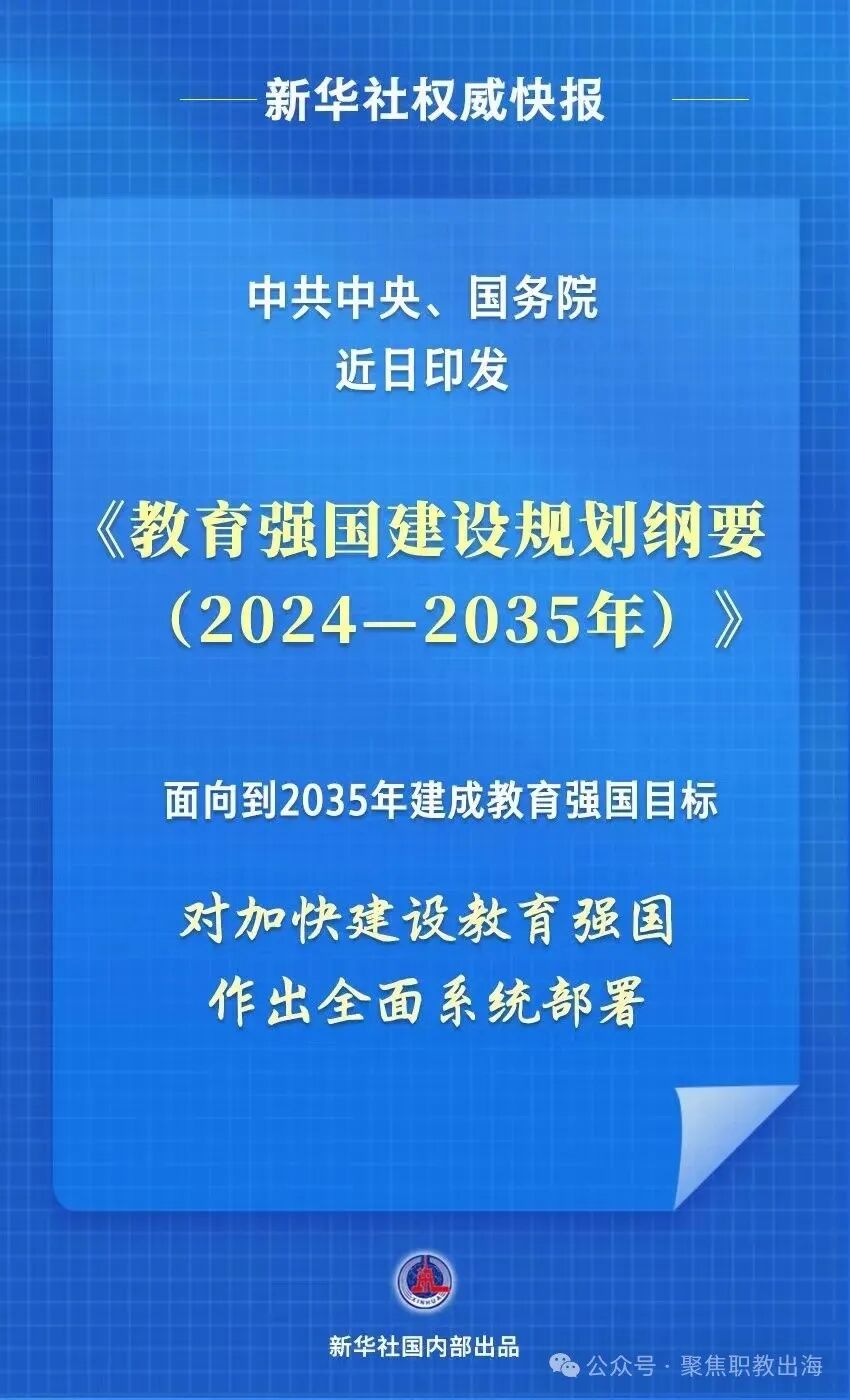 聚焦职教出海近日,中共中央、国务院印发了《教育强国建设规划纲要(2024-2035年)》(以下简称《纲要》),是首个以教育强国为主题、以全面服务中国式现代化建设为重要任务的国家行动计划,是全面推进教育科技人才一体统筹发展、提升国家创新体系整体效能的顶层制度安排。