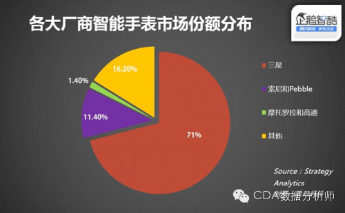 数据显示,今年第一季度,三星智能手表的市场份额已经达到惊人的71%,远超其他厂商;第二季度,三星智能手表的份额再进一步,增长至73.6%,和对手的差距进一步拉大。