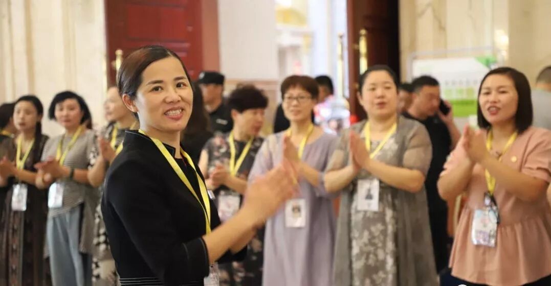 今天学员入场时,一位小朋友突然指着门口喊了一句:“好多漂亮姐姐啊!”这一幕靓丽的风景线正是壹玖的女子义工团。女子义工团最早由陈秋创立,每次大课,义工们都积极踊跃报名,女子义工团团长龚永香说:“现在义工报名真是光速一般,名额一会就没了!”