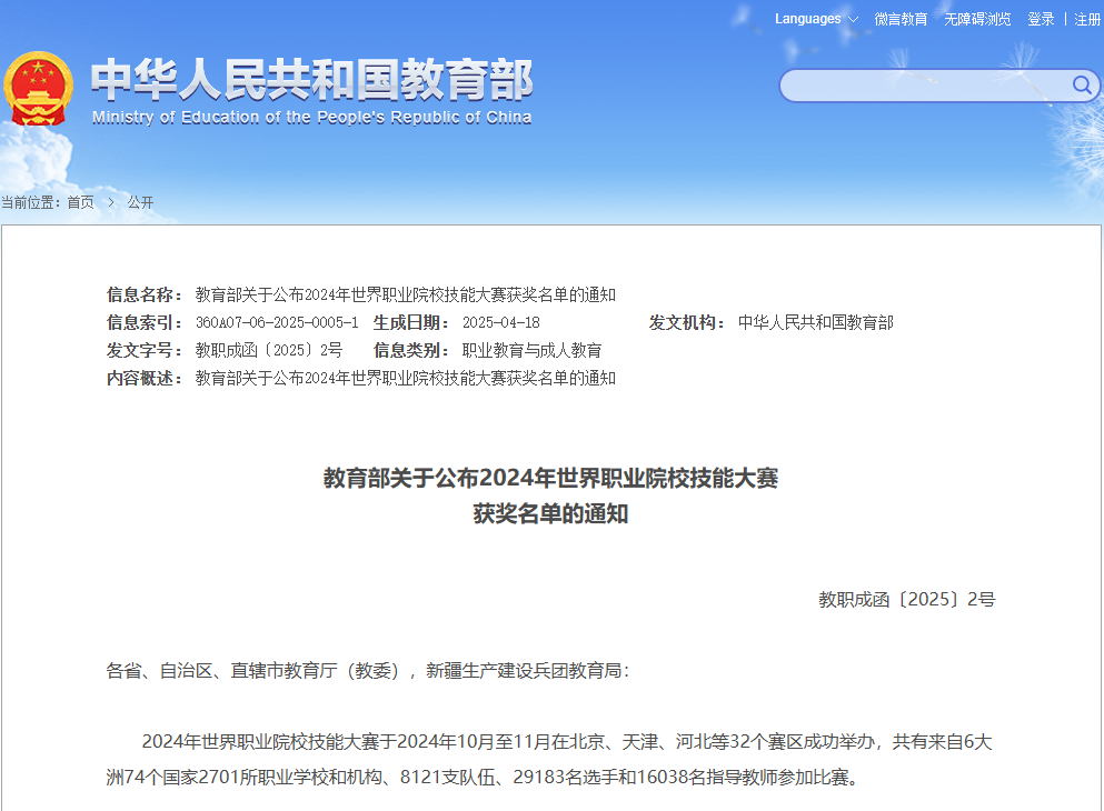 根据统计,本次技能大赛总决赛争夺赛高职组共有844所学校获奖,共计获奖2813项。其中,金奖495项,银奖911项,铜奖1407项。金华职业技术大学的获奖总数最多,金银铜奖共27项;其次是深圳职业技术大学,获奖总数是24项;江苏联合职业技术学院位居第三,获奖总数为20项。