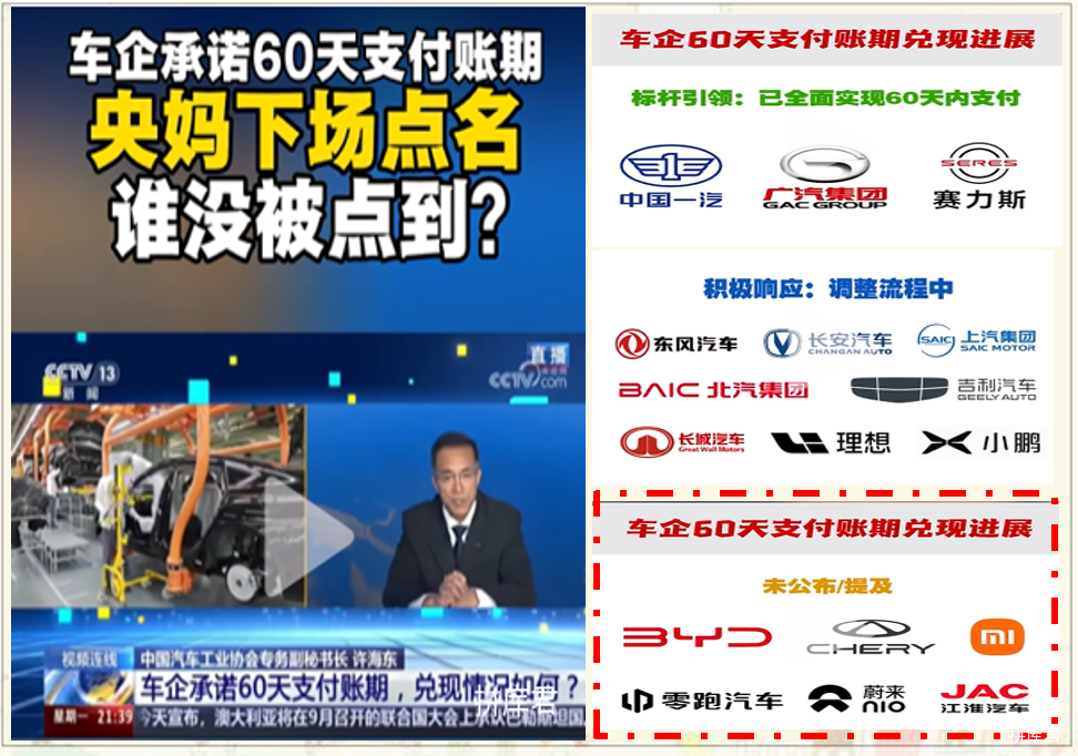 6月11日,全国17家重点车企积极响应落实国务院修订后的《保障中小企业款项支付条例》,陆续作出“供应商支付账期不超过60天”的公开承诺;