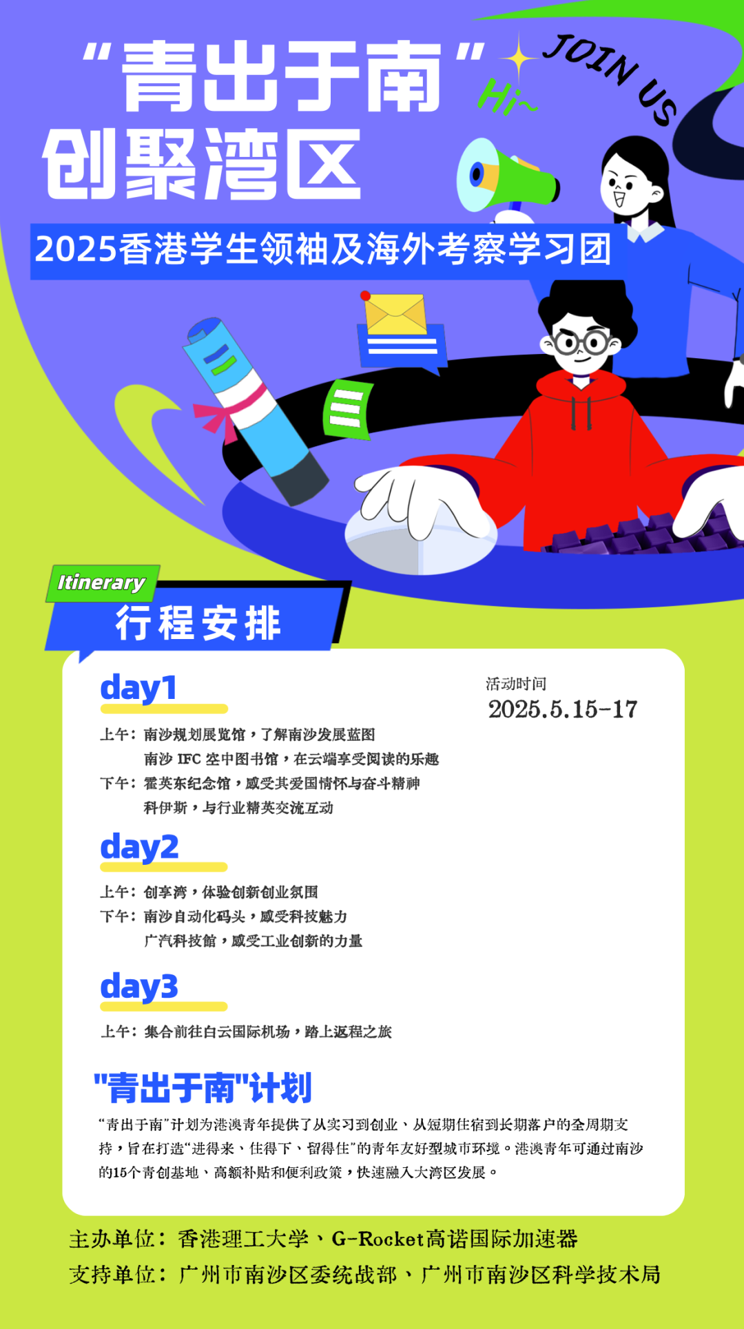 备受瞩目的2025年香港学生领袖及海外考察学习团即将启程!港澳青年将深入了解南沙的发展蓝图、科技魅力、创新创业氛围以及工业创新力量。G-Rocket 高诺国际加速器青创基地将全程陪伴,助力港澳青年在南沙开启新的旅程,实现个人价值与梦想。