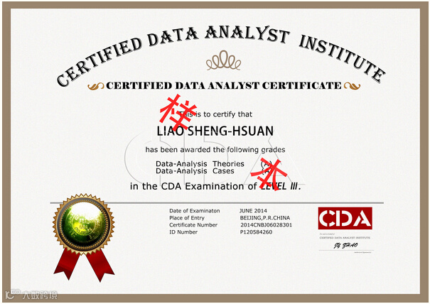 (此证书为CDA协会颁发等级认证证书Level Ⅰ,全国统考,一年两次,此证书为CDA数据分析师唯一认证证书,可以作为企业事业单位选拔和聘用专业人才的任职参考依据。)