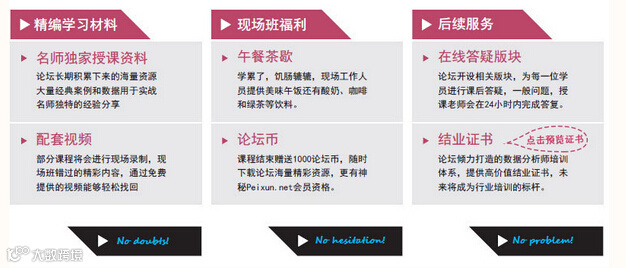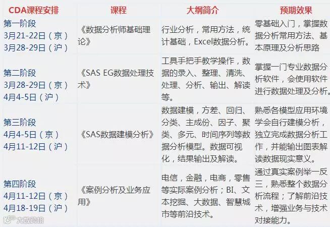 CDA数据分析师系统培训,由人大经济论坛根据CDA协会认证标准而设立的一套针对数据分析师技能的全面系统培训。培训师资目前均来自学界、实务界相关领域的讲师、教授、专家、工程师以及企业资深分析师,名师荟萃,代表了国内数据分析培训的最高水平,可以很好地保证培训的学员既能学到扎实的数据分析理论知识,又能具备较强的利用软件解决实际问题的能力,保证学员能胜任各行业数据分析师工作的要求。CDA数据分析师培训注重结合实际,把最具技术含量、最具价值理念的课程传授给学员。课程还注重启发式教学,让学员在解决问题的动手中去学习。