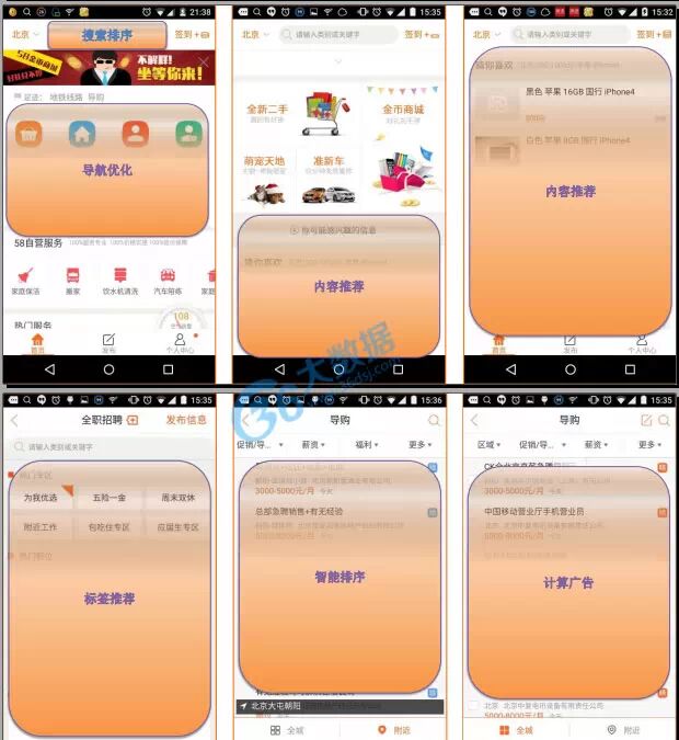 在本地生活服务及O2O领域中,推荐技术和数据挖掘覆盖了50%左右的应用场景。对大数据挖掘较好的应用能带来对从用户体验到收入变现等各个方面数据指标的实质提升。尤其在移动互联网越来越流行的时代,手触设备上对推荐技术的依赖更大。例如:在58同城的新版app中,推荐结果将直接放到app首页中。
