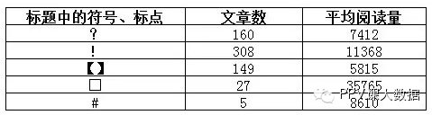 在微信中,我们经常会看到各种以“10大”、“五个”、“三句话”等为标题的抓人文章(这是否也算是一种排榜的形式呢?)这样的操作手法同样也被认为是吸引阅读的经验之谈。在我们的样本中,有近四成的文章运用到了此方法,而我们对这437篇文章进行统计计算,得到的平均阅读数为7795次,低于全部样本文章的平均阅读数9607次。