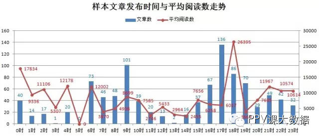 在发布时间上,样本公号选择最多的时间段是早6点到11点,下午3点到次日凌晨1点。其中几个重要的发布时间节点依次为6点—7点、9点—10点,17点-18点,分别对应于晨起,上班时间及下班前。这也是不少人认为的重要阅读时间。而实际的阅读数统计也表明,这几个作息时间段,文章阅读量确实较高。(有人总结出的几个微信阅读时间段:马桶阅读时段:7:00-8:30;午间休息时段:11:30-13:00;下班后闲暇时段:17:00-18:00;睡前浏览时段:21:30-23:00。请与上述图表对照看是否相符。)