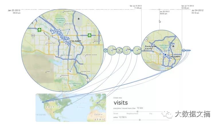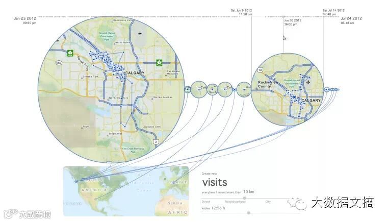 在这篇文章中,Andy Kirk讨论了visits,由AliceThudt, Sheelagh Carpendale 和 Dominikus Baur创造的新可视化工具,通过浏览你的位置历史,探索你的旅行足迹。该工具是基于卡尔加里大学的一个研究项目。你可以在这里找到相应的发布。