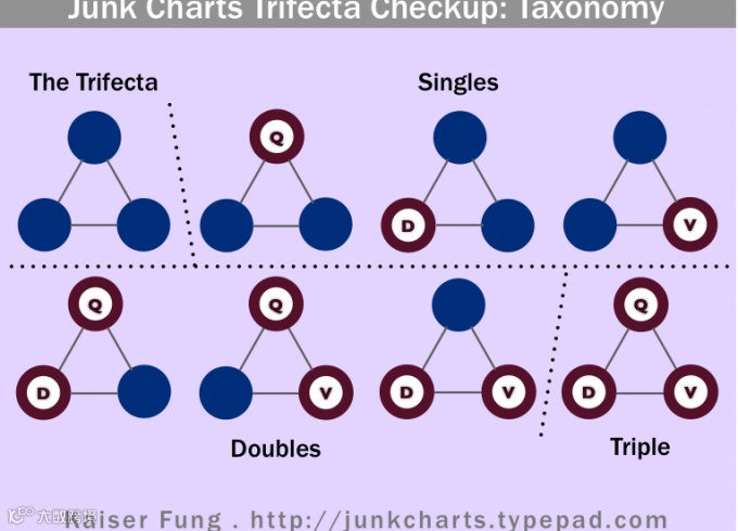 这是由KaiserFung开发的一个很好的资源,Trifecta Checkup是数据可视化评价的总体框架,他把所有的数据可视化评论为八种类型。当Fung发布这个产品的时候我们已经有所报道,但现在他提供了“权威指南”,使我们更容易理解它是如何工作的,以及如何在分析各种数据可视化时运用它。