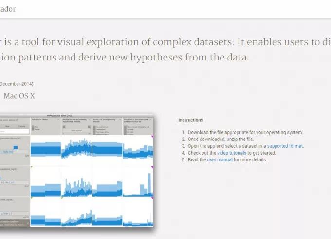 Mirador是一种提供大型数据库的可视化工具,通过可视化的基本结构,确定解释变量的群体。上手的最佳方式是阅读它的使用手册,并从网页下载的应用程序后,打开其中一个例子亲自操作。